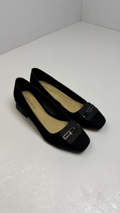 کفش زنانه پاشنه ۳ سانتی پنجه خوکی مدل یراق حلقه ای